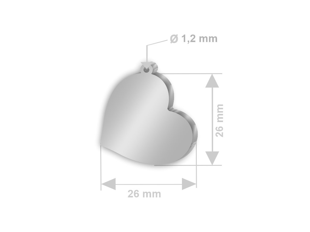 Strieborné šikmé srdiečko 26x26 mm s vonkajším očkom